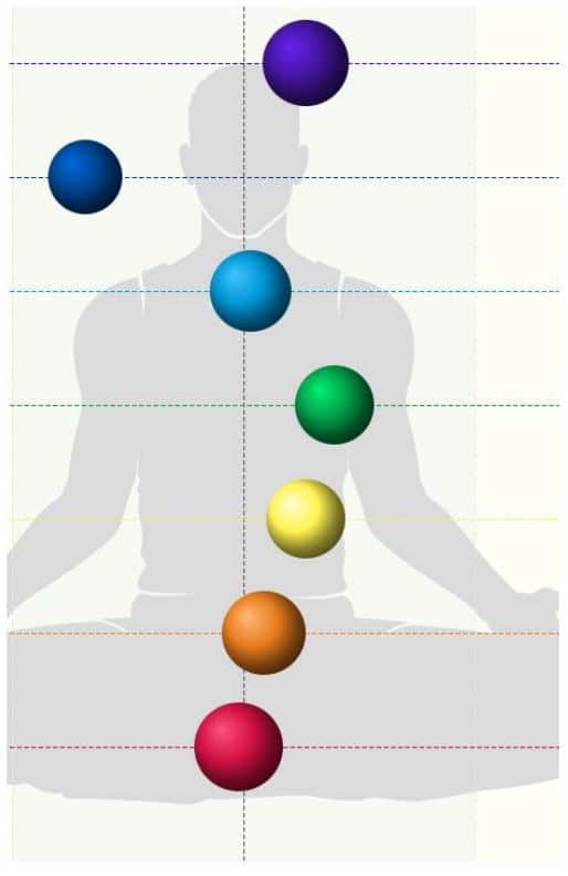 - Nous constatons un alignement des 7 chakras par rapport à la ligne centrale